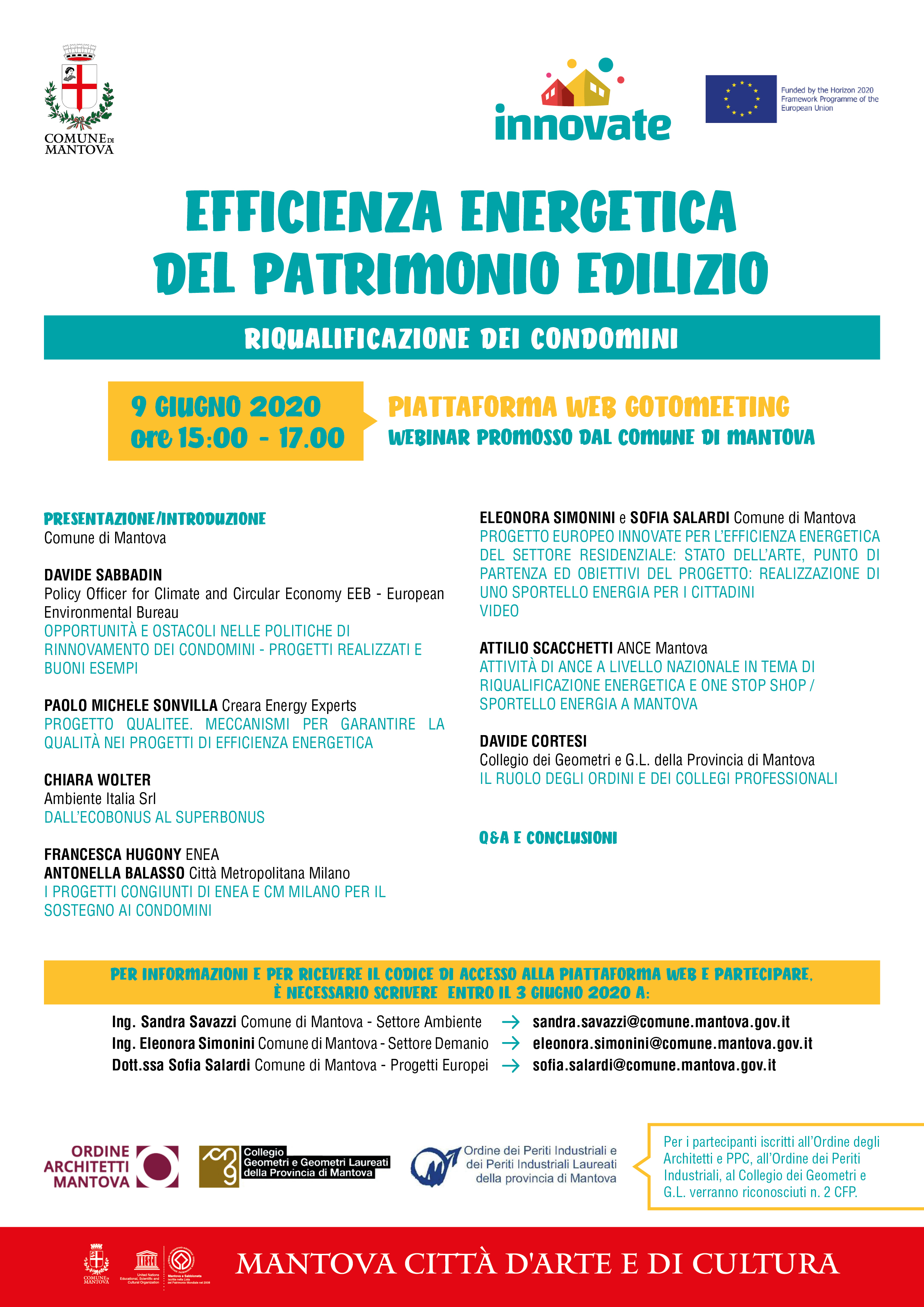 Il Comune di Mantova organizza un nuovo evento di comunicazione e formazione sul tema della riqualificazione energetica degli edifici nell’ambito delle attività del progetto europeo “Innovate” di cui è partner.