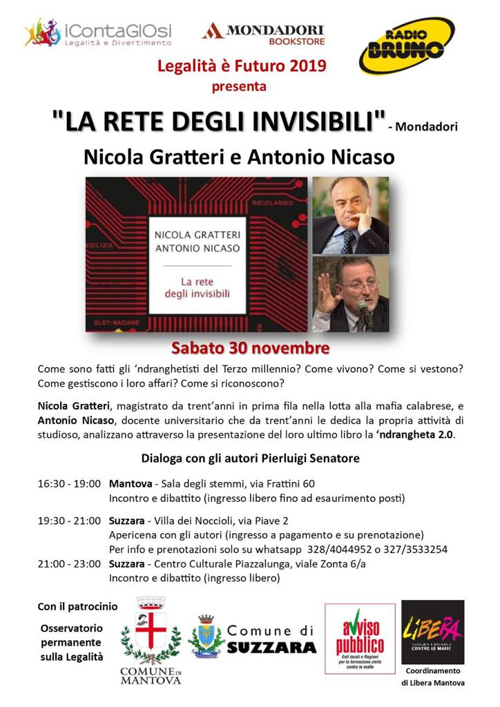 Sabato 30 novembre alle 16.30, presso la Sala degli Stemmi di Palazzo Soardi, via Frattini 60, presentazione de “La rete degli invisibili”, l’ultimo libro sulla ‘ndrangheta di NICOLA GRATTERI, magistrato, e ANTONIO NICASO, giornalista, saggista e docente.