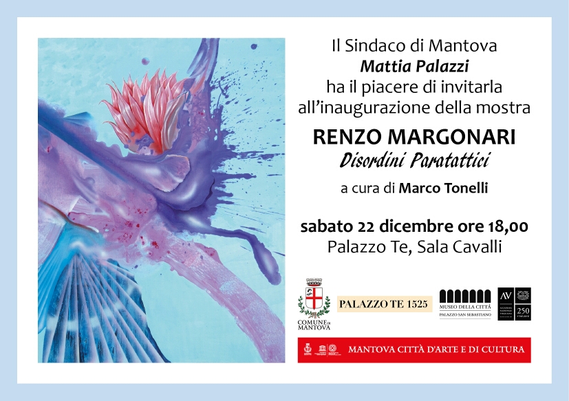Sabato 22 dicembre 2018 alle ore 18.00 presso la Sala dei Cavalli di Palazzo Te si inaugura la nuova mostra di Renzo Margonari, DISORDINI PARATATTICI a cura di Marco Tonelli. Fino al 24 febbraio.